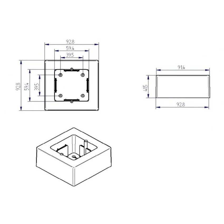 Universele opbouw aansluitdoos enkel | 92x92x42mm